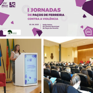 APAV | Associação Portuguesa de apoio à Vítima | pelos seus 35 anos de trabalho ininterrupto na proteção e apoio às vítimas de violência, e congratula o Gabinete de Apoio à Vítima de Paços de Ferreira pela organização exemplar destas jornadas, que se afirmam como um espaço fundamental de sensibilização, cooperação e construção de boas práticas, esperando que esta iniciativa se consolide como um espaço regular de diálogo, partilha e construção de soluções.