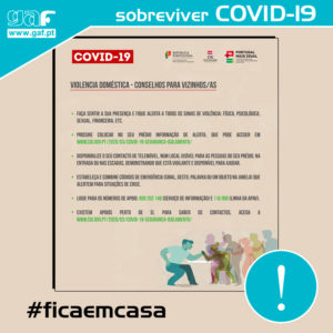 • Procure colocar no seu prédio informação de alerta, que pode aceder em www.cig.gov.pt/2020/03/covid-19-seguranca-isolamento