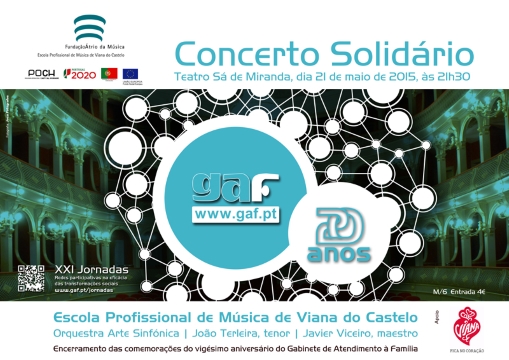 Teatro Sá de Miranda, dia 21 de maio de 2015, às 21h30 Escola Profissional de Música de Viana do Castelo Orquestra Arte Sinfónica | João Terleira, tenor | Javier Viceiro, maestro Encerramento das comemorações do vigésimo aniversário do Gabinete de Atendimento à Família M/6 Entrada 4€