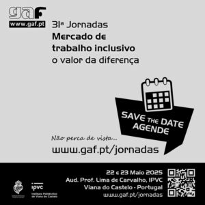 31ª Jornadas do GAF - Mercado de trabalho inclusivo – o valor da diferença - Faltam 2 meses! 22 e 23 de maio são, este ano, dias que deve reservar na sua agenda... vão decorrer as 31as Jornadas do GAF! Como acontece desde o ano da criação, o GAF - Gabinete de Atendimento à Família organiza anualmente as Jornadas - momento privilegiado de encontro de saberes e partilha de conhecimentos.