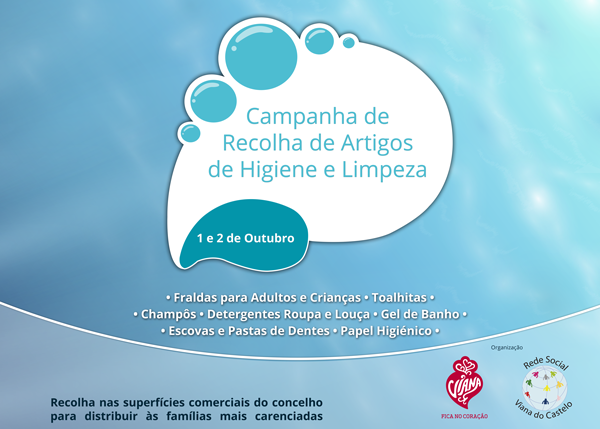A Rede Social de Viana do Castelo, vai promover, este fim-de-semana (01 e 02 de Outubro), recolha de Artigos de Higiene (fraldas para adultos e crianças, champô, sabonetes, gel de banho, pensos higiénicos, lâminas de barbear, escovas e pastas de dentes, pentes esponjas e produtos de limpeza), junto de 16 supermercados e hipermercados do concelho. Tem como objetivo suprimir necessidades diagnosticadas no âm[...]