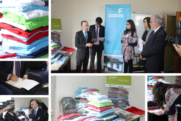 No passado dia 26 de outubro, o Dr. Fernando Santos Pereira, Subinspetor-geral da Autoridade de Segurança Alimentar e Económica (ASAE), acompanhado pelo Eng. José Maria Costa, Presidente da Câmara Municipal de Viana do Castelo, entregou material apreendido ao GAF – Gabinete de Atendimento à FamÃlia, num total de 181 artigos – polos, calções e camisolas - que serão distribuÃdos pelas famÃlias em situa[...]