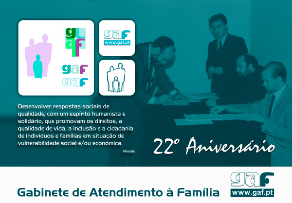 24 maio 1994/2016 22º aniversário do GAF - Gabinete de Atendimento à Família. Obrigado a todos os que colaboram com esta causa... "Desenvolver respostas sociais de qualidade, com um espírito humanista e solidário, que promovam os direitos, a qualidade de vida, a inclusão e a cidadania de indivíduos e famílias em situação de vulnerabilidade social e/ou económica." Missão do GAF +inf. www.g[...]