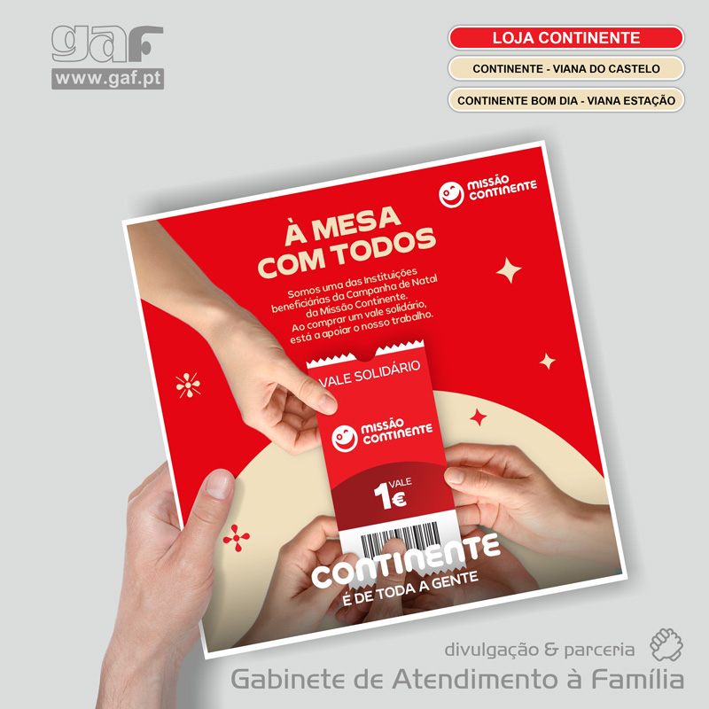 Foi com muita satisfação que vimos o GAF - Gabinete de Atendimento à Família selecionado para fazer parte da Campanha de Natal da Missão Continente !
