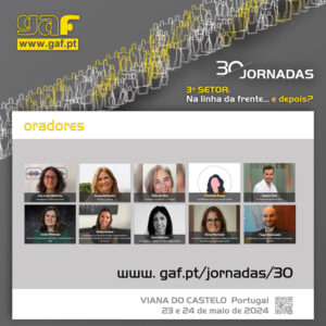 30 Jornadas do GAF - 3º Setor: Na linha da frente...e depois? Conheça os/as nossos/as convidados/as e faça a sua inscrição em www.gaf.pt/pt/jornadas/30 Contamos com a sua presença!