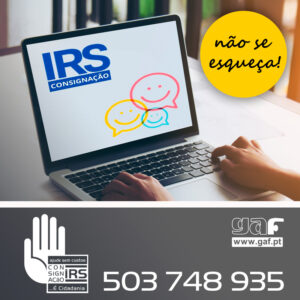 Não se esqueça do GAF quando fizer a sua declaração! A consignação do IRS permite doar a uma Instituição uma parte do imposto que iria reverter a favor do Estado. Não tem qualquer custo para o/a contribuinte e em vez do IRS ser entregue na totalidade ao Estado, uma parte é encaminhada para a causa indicada na declaração.