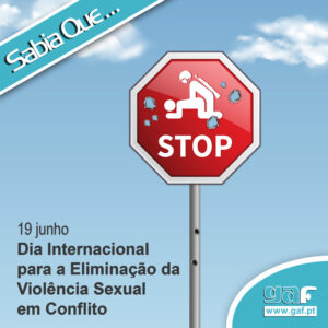 Sabia Que … ...O Dia Internacional para a Eliminação da Violência Sexual em Conflito, foi proclamado a 19 de junho de 2015, através da Resolução 69/293 adotada na Assembleia Geral das Nações Unidas? O Dia Internacional para a Eliminação da Violência Sexual em Conflito é celebrado anualmente a 19 de junho, com o objetivo de consciencializar para a necessidade de colocar um ponto final a este tipo de crimes. Mais do que ser um dia de comemoração, é um dia de protesto, de luto e de reflexão. É também um dia de homenagem às vítimas de violência sexual em contexto de conflito armado, por todo o mundo, e a todos aqueles que com enorme coragem lutam para o fim deste drama.