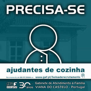 O GAF encontra-se a fazer um processo de recrutamento e seleção para Ajudantes de cozinha: