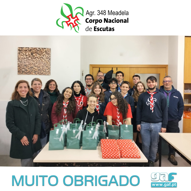 13 A Comunidade de Inserção do GAF - Gabinete de Atendimento à Família agradece uma vez mais, ao agrupamento 348 dos escuteiros da Meadela por fazerem o Natal acontecer junto dos nossos utentes. O Agradecimento é extensível a todos os que colaboraram com a iniciativa de recolha de presentes, que irão certamente roubar muitos sorrisos a quem os receber. Obrigada! Esperemos continuar juntos nesta jorna[...]