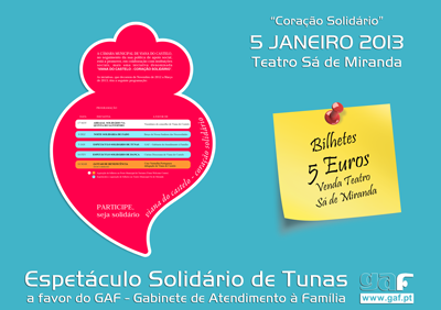 A Câmara Municipal de Viana do Castelo no seguimento da sua política de apoio social, está a promover, em colaboração com instituições sociais, uma iniciativa denominada Viana do Castelo-coração solidário. O GAF é uma das organizações sociais envolvida nesta feliz iniciativa da autarquia local, a qual se traduz na realização de um Espetáculo Solidário de Tunas, no próximo dia 5 de janeiro, pel[...]