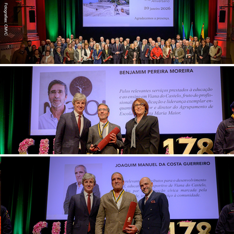 A Câmara Municipal de Viana do Castelo entregou os Títulos Honoríficos de 2026 para Cidadão de Honra, Cidadão Honorário, Cidadão de Mérito e Instituição de Mérito, distinguindo personalidades e instituições que, nas mais diversas áreas, se destacaram pelos serviços prestados a Viana do Castelo, a Portugal e ao mundo.