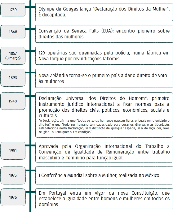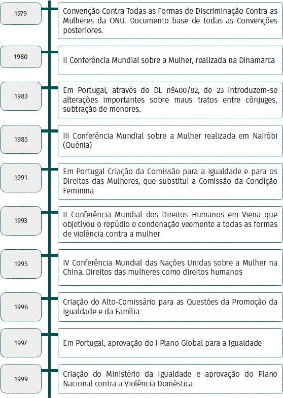 Portugal, atento às resoluções da ONU e orientações da União Europeia, tem vindo a incorporar na Constituição e corpo legislativo mecanismos e medidas que visam promover a igualdade de género na sociedade portuguesa.